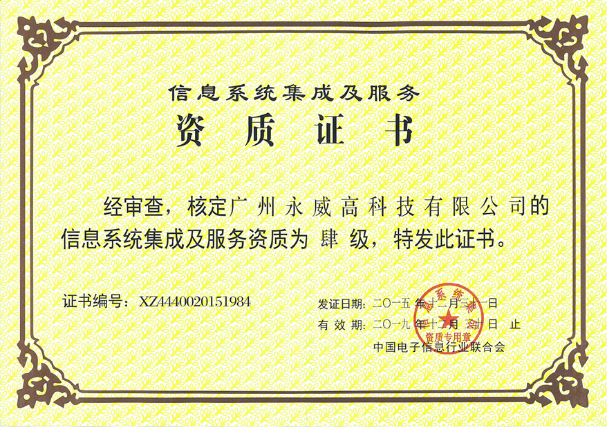 信息系统集成及服务资质证书
