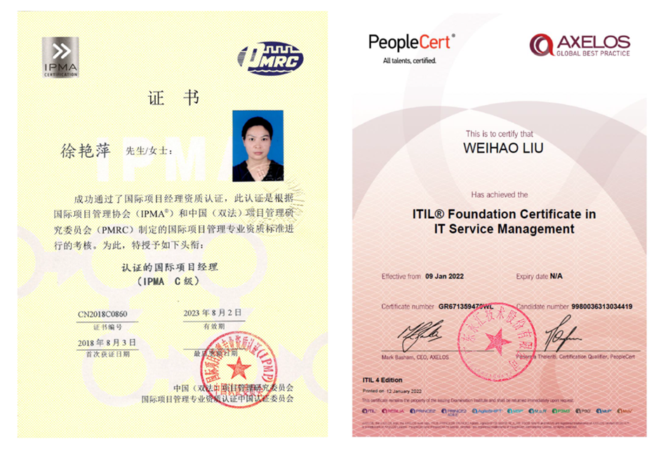 项目经理IPMA认证和ITIL证书